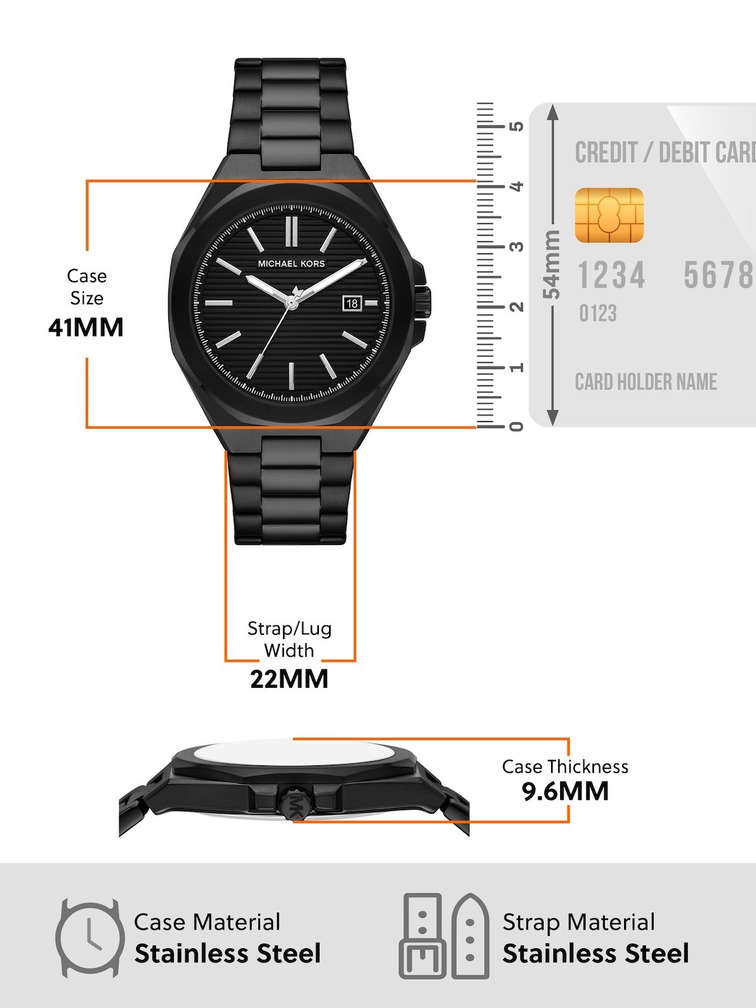 Short Description Meet the Michael Kors Callum watch. Featuring a bold 41mm octagonal stainless steel case with a sleek black finish, this design is complemented by a striking black dial, three-hand quartz movement and date window display. A refined timepiece with a modern edge.
