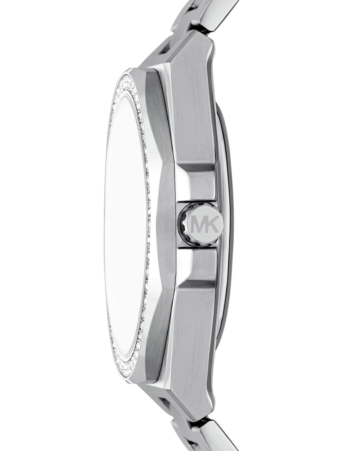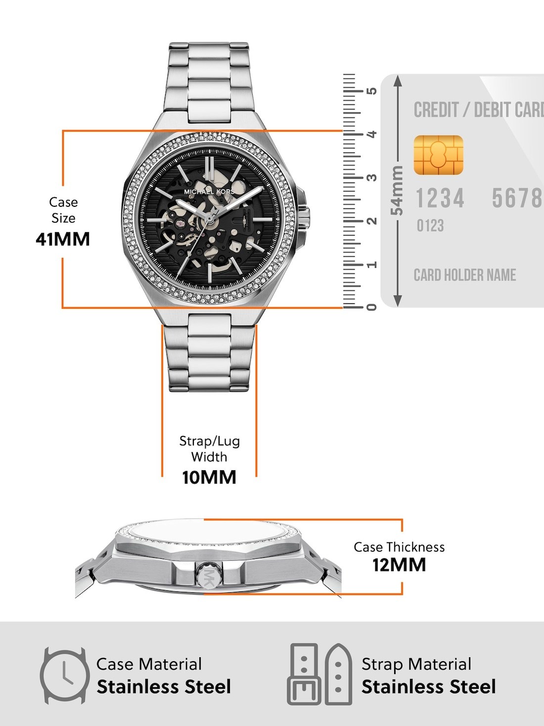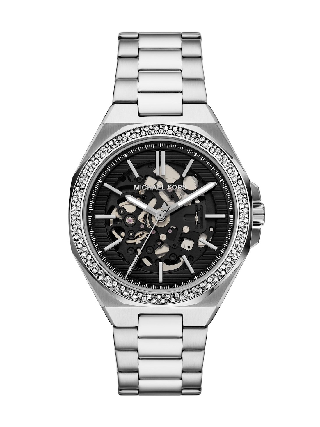 Short Description This Michael Kors watch features an octagonal stainless steel case paired with a black dial for a modern, architectural look. An automatic movement powers the classic three-hand display, adding precision to its contemporary aesthetic.