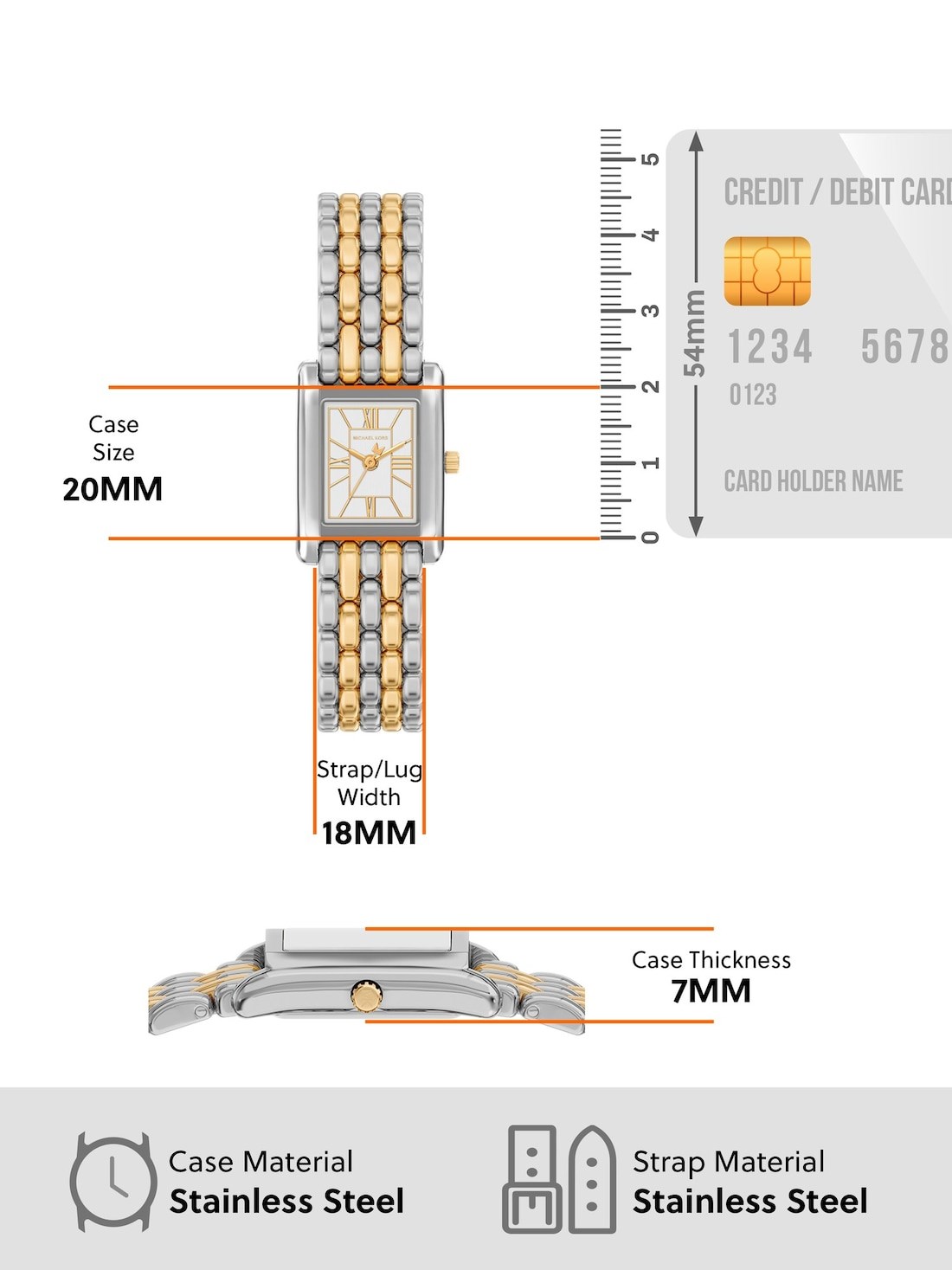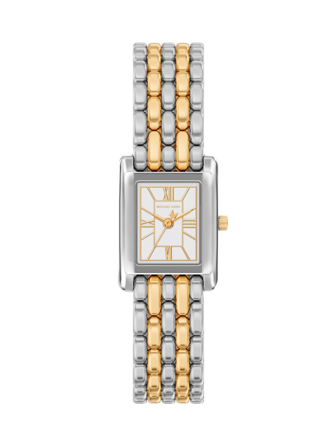 Short Description A scaled-down take on the classic Essex tank, now reimagined in two-tone with a sleek five-link half-moon bracelet. This refined update delivers everyday polish with timeless appeal.