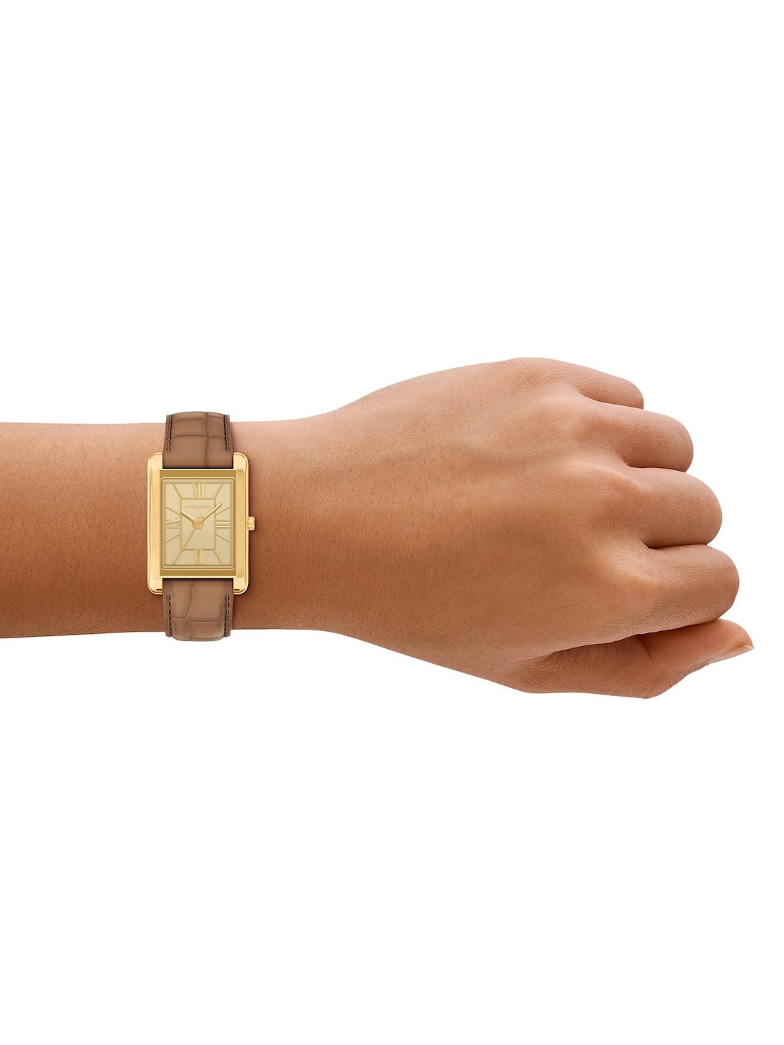 Short Description A chic take on our signature tank silhouette, the Mini Essex pairs a brown croc-embossed leather strap with a sleek gold-tone case. The rich texture and warm tone lend a fashion-forward edge, perfect for everyday wear.