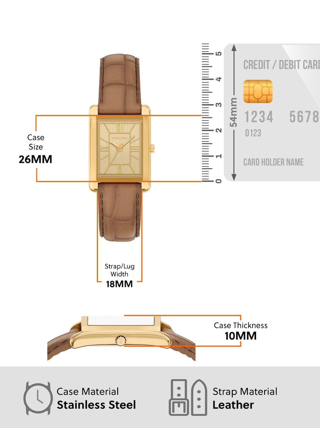 Dial: Rectangle gold stainless steel case, with a brushed gold dial.