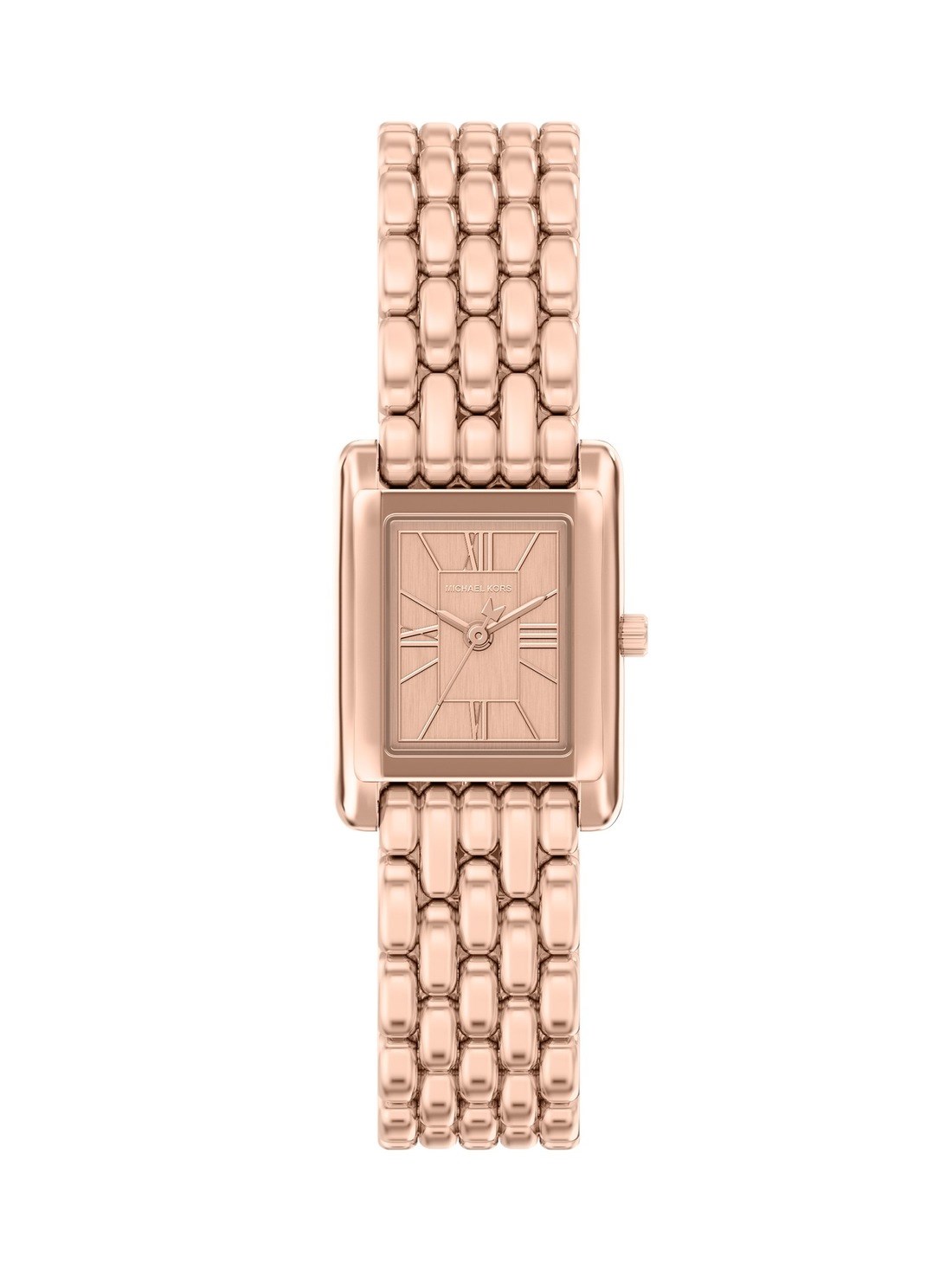 Short Description A scaled-down take on the classic Essex tank, now reimagined in rose gold-tone with a sleek five-link half-moon bracelet. This refined update delivers everyday polish with timeless appeal.