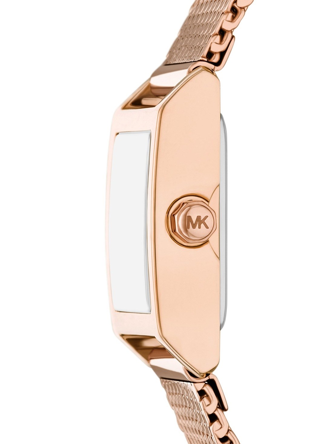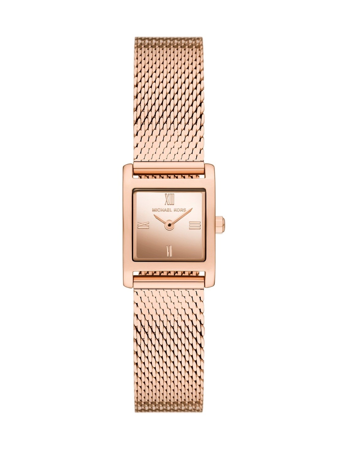 Short Description The Georgie watch gets a high-shine update for Holiday with a sleek mirror dial and a fluid rose gold-tone liquid mesh strap that catches the light with every move. This petite square design delivers modern glamour with a glossy edge—perfect for festive nights and elevated everyday wear.