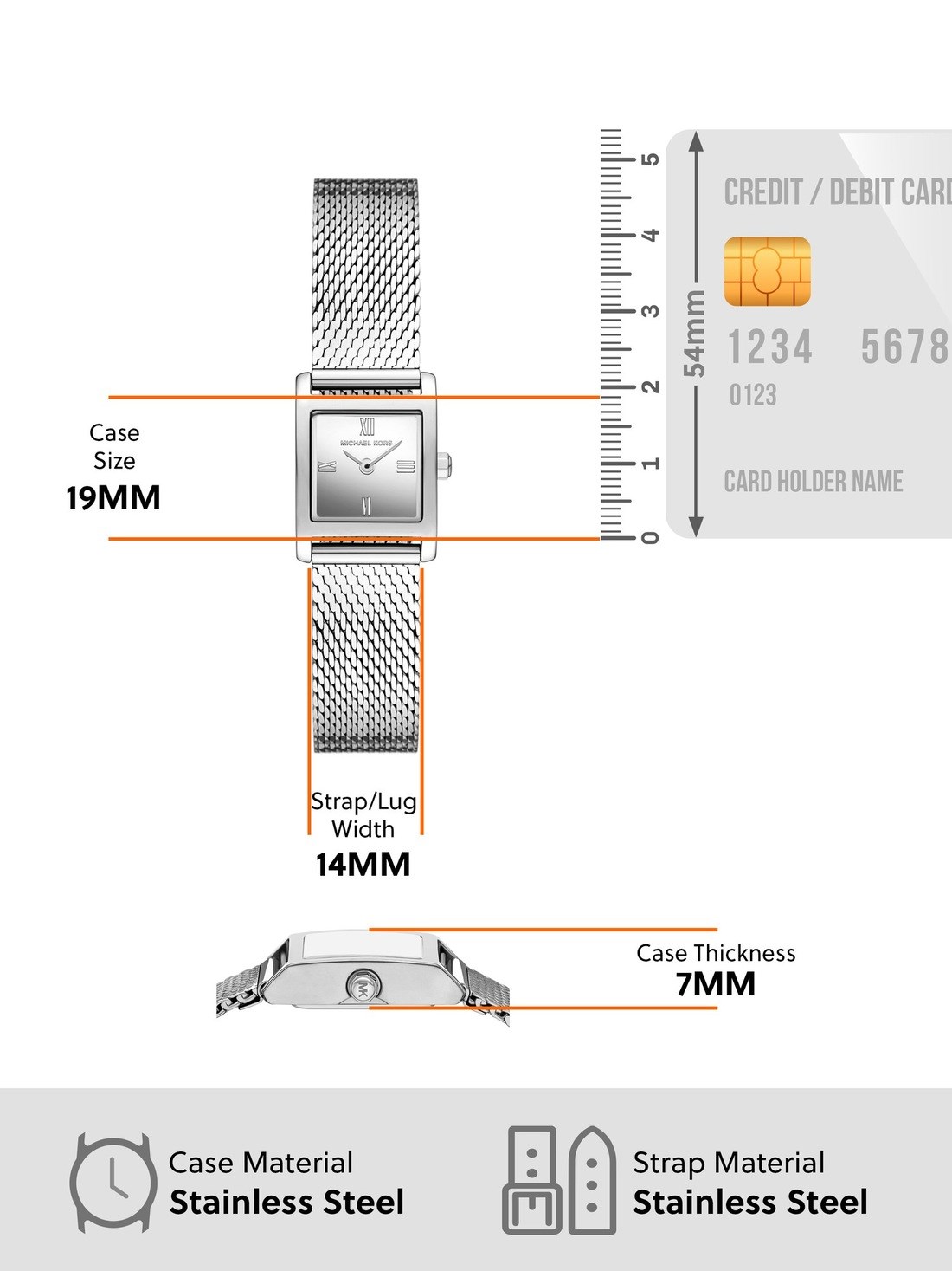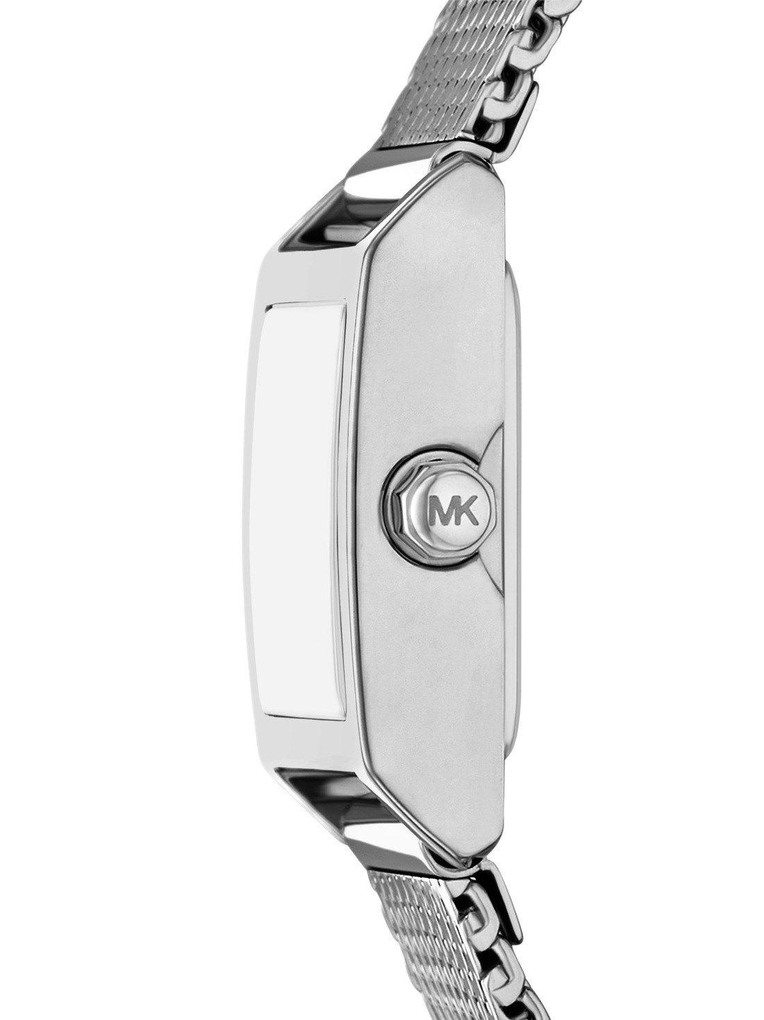 Short Description The Georgie watch gets a high-shine update for Holiday with a sleek mirror dial and a fluid silver-tone liquid mesh strap that catches the light with every move. This petite square design delivers modern glamour with a glossy edge—perfect for festive nights and elevated everyday wear.
