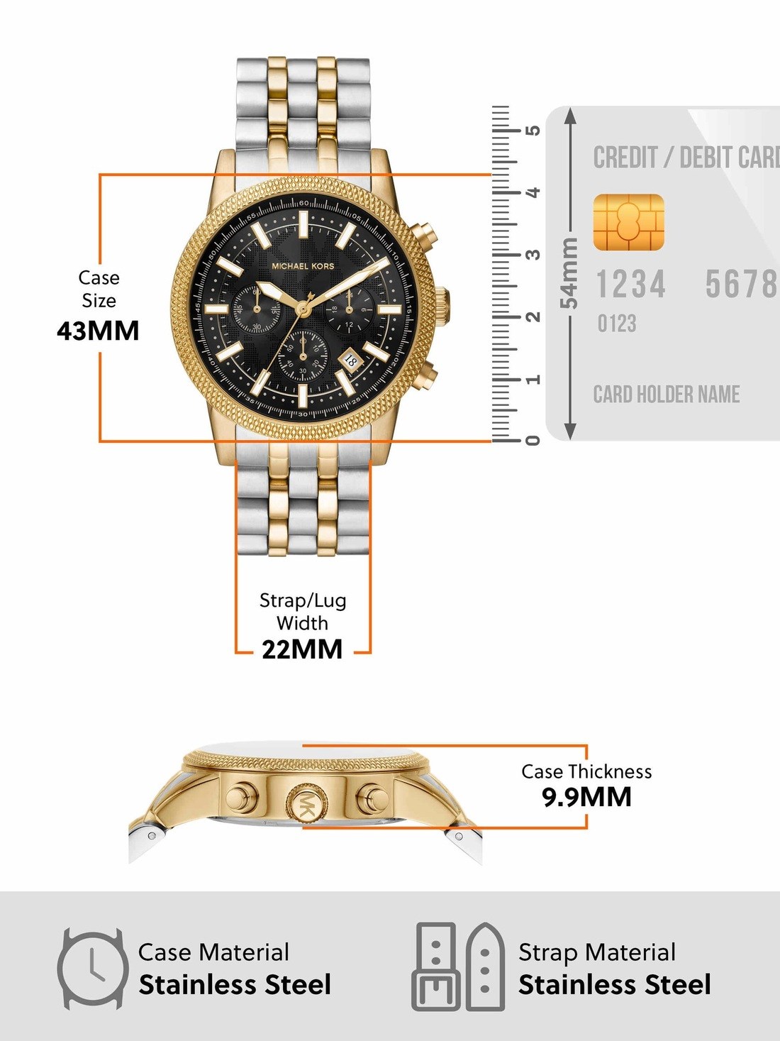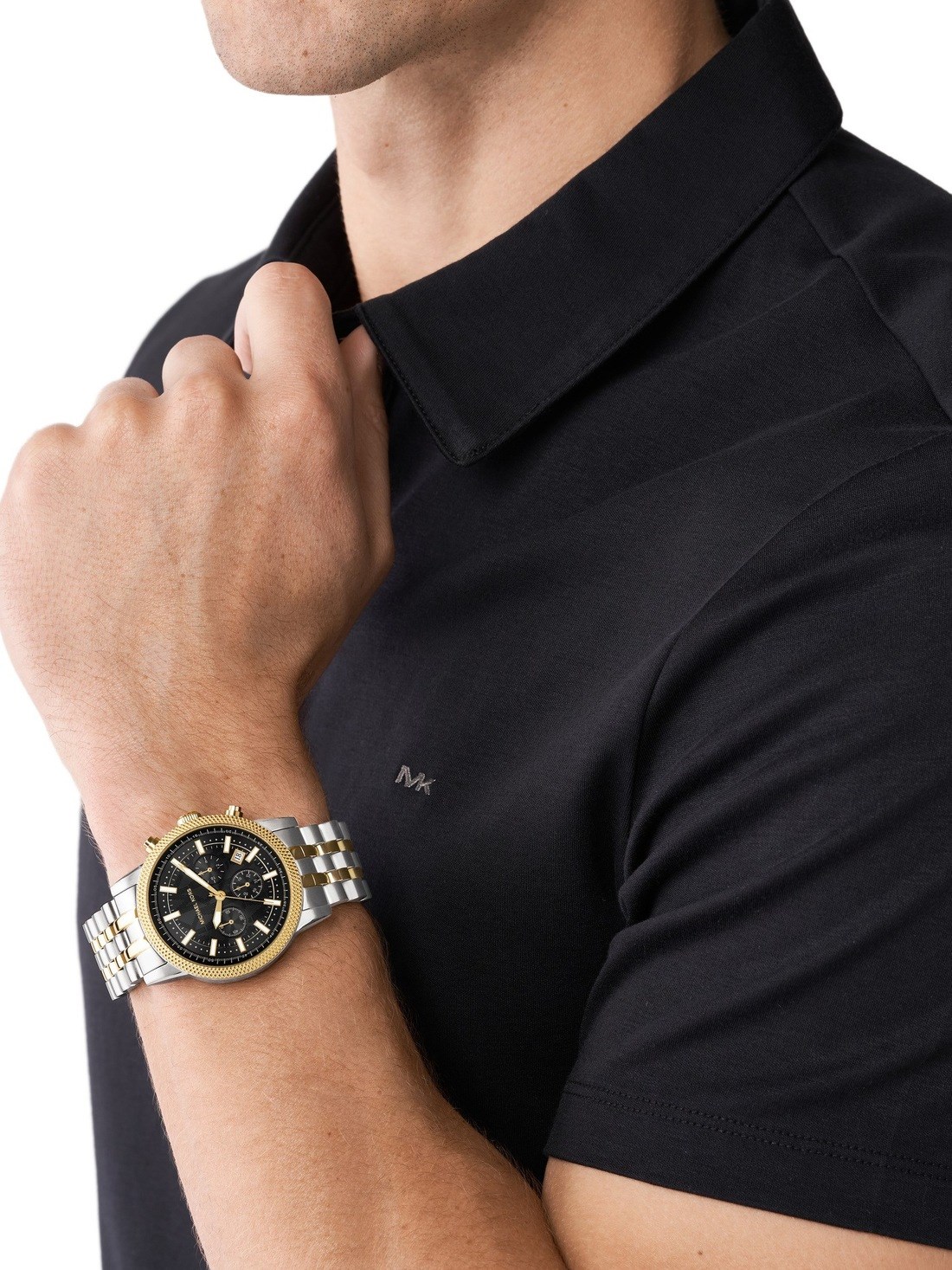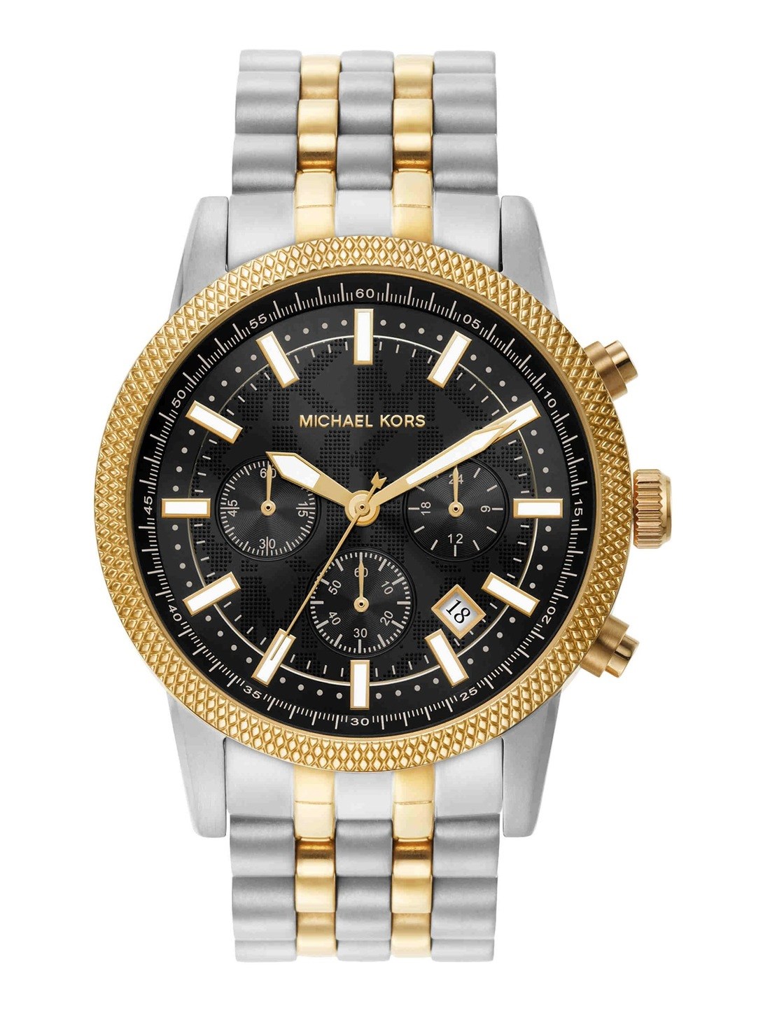 Watch Features mk, kors, michael kors watches for men, mens michael kors watches, stainless steel watches for men, two tone watches for men, chronograph watches for men, hutton