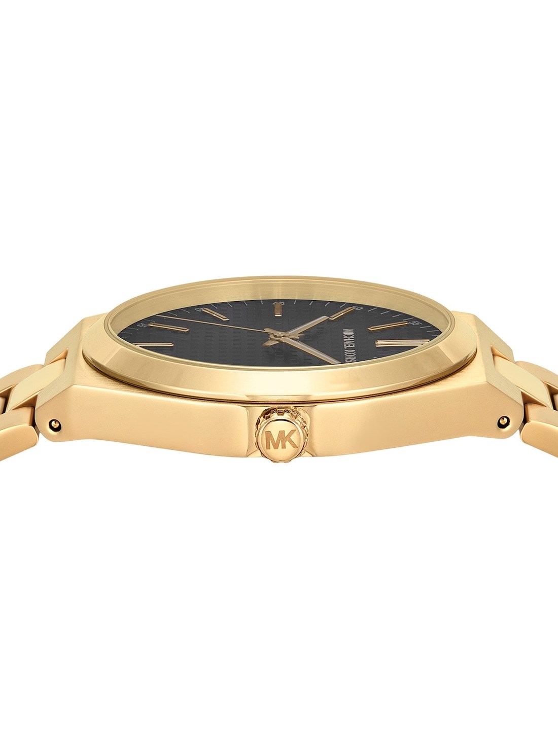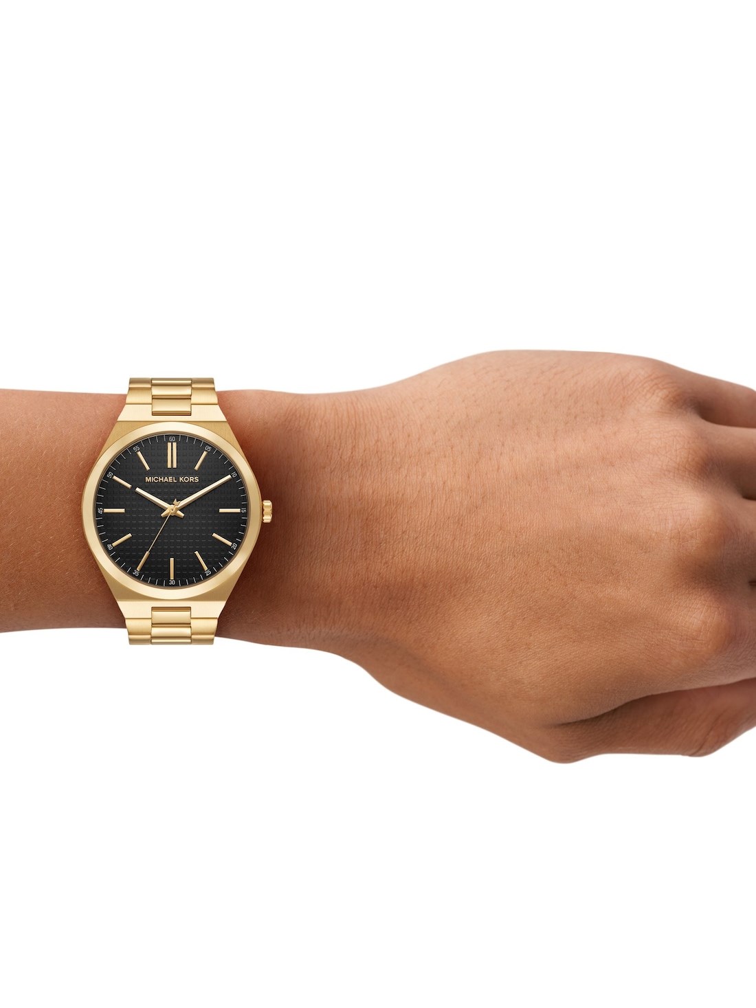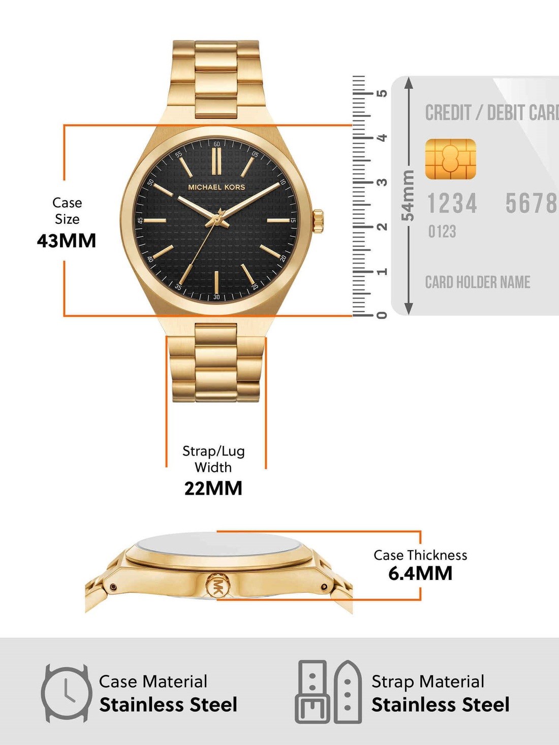 Short Description Bold and refined, the Lennox watch is a statement in everyday sophistication. Designed with a 43mm case and chronograph movement, this timepiece features a black grid-textured dial set against a gold-tone stainless steel bracelet for a sleek contrast.