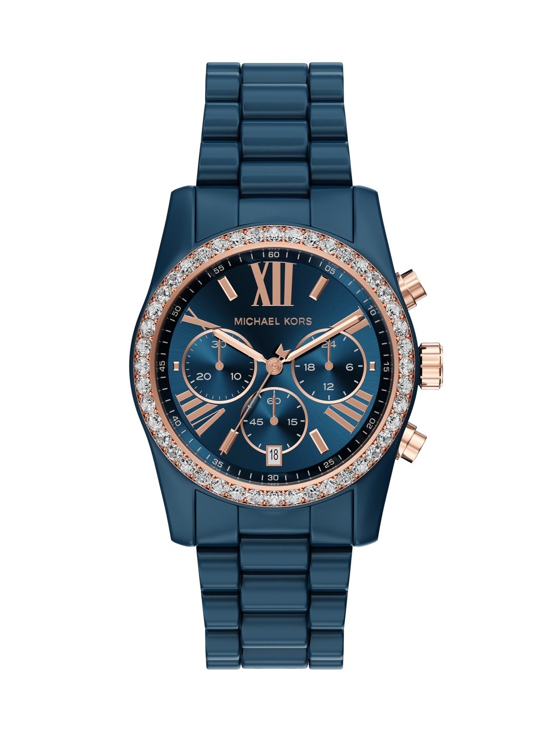 Short Description A timeless icon with a bold new twist, the Lexington Lux watch returns for Holiday in high-shine ceramic. Featuring a larger 38mm case and glitz topring, this updated design brings modern edge to the classic chronograph. The navy case and bracelet is accented with rose gold-tone details and a tonal dial—delivering luxe texture and standout sophistication for the season.