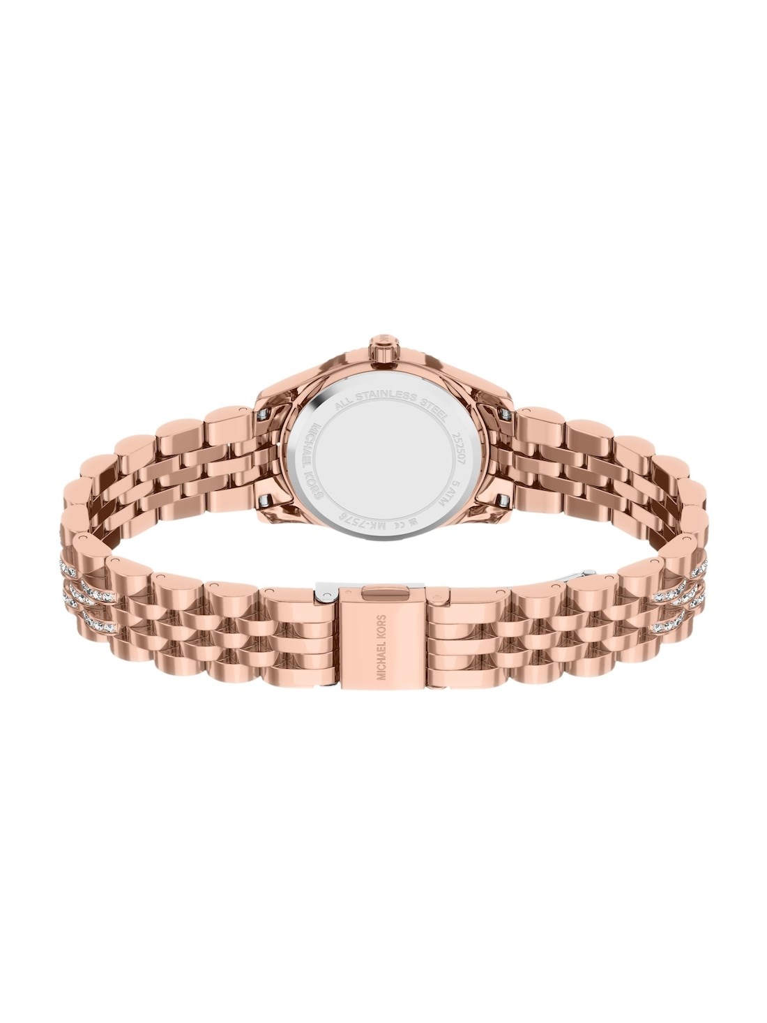 Watch Features mk, michael kors, michael kors watches for women, women's michael kors watches, stainless steel watches for women, rose gold-tone watches for women, rose gold watches for women, lexington, quartz three hand, japan, japanese movement