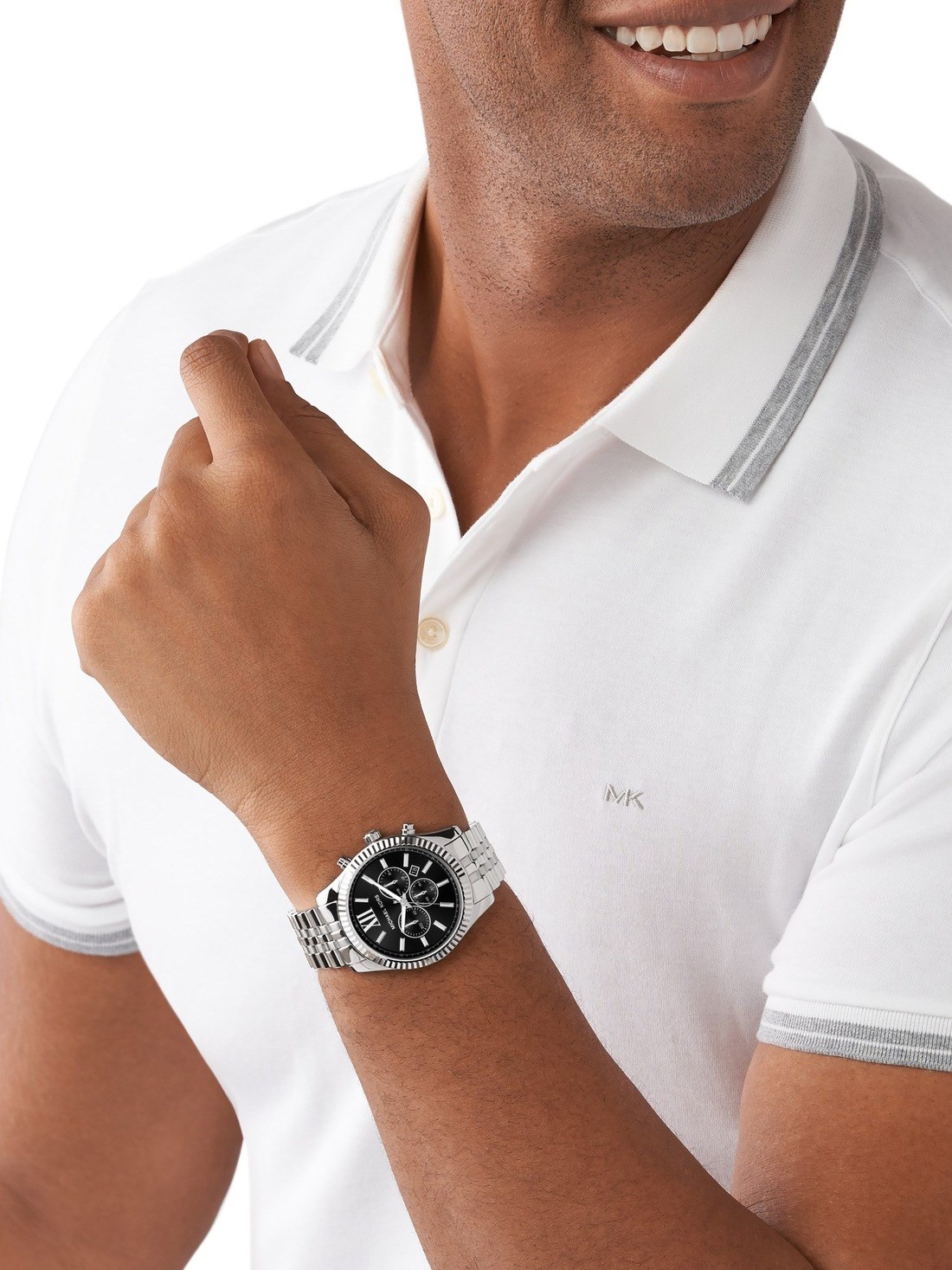 Watch Features michael kors watch ,black watch ,silver strap watch ,men watch ,stainless steel watch ,chronograph watch ,quartz watch ,summer collection watch ,lexington watch ,watches