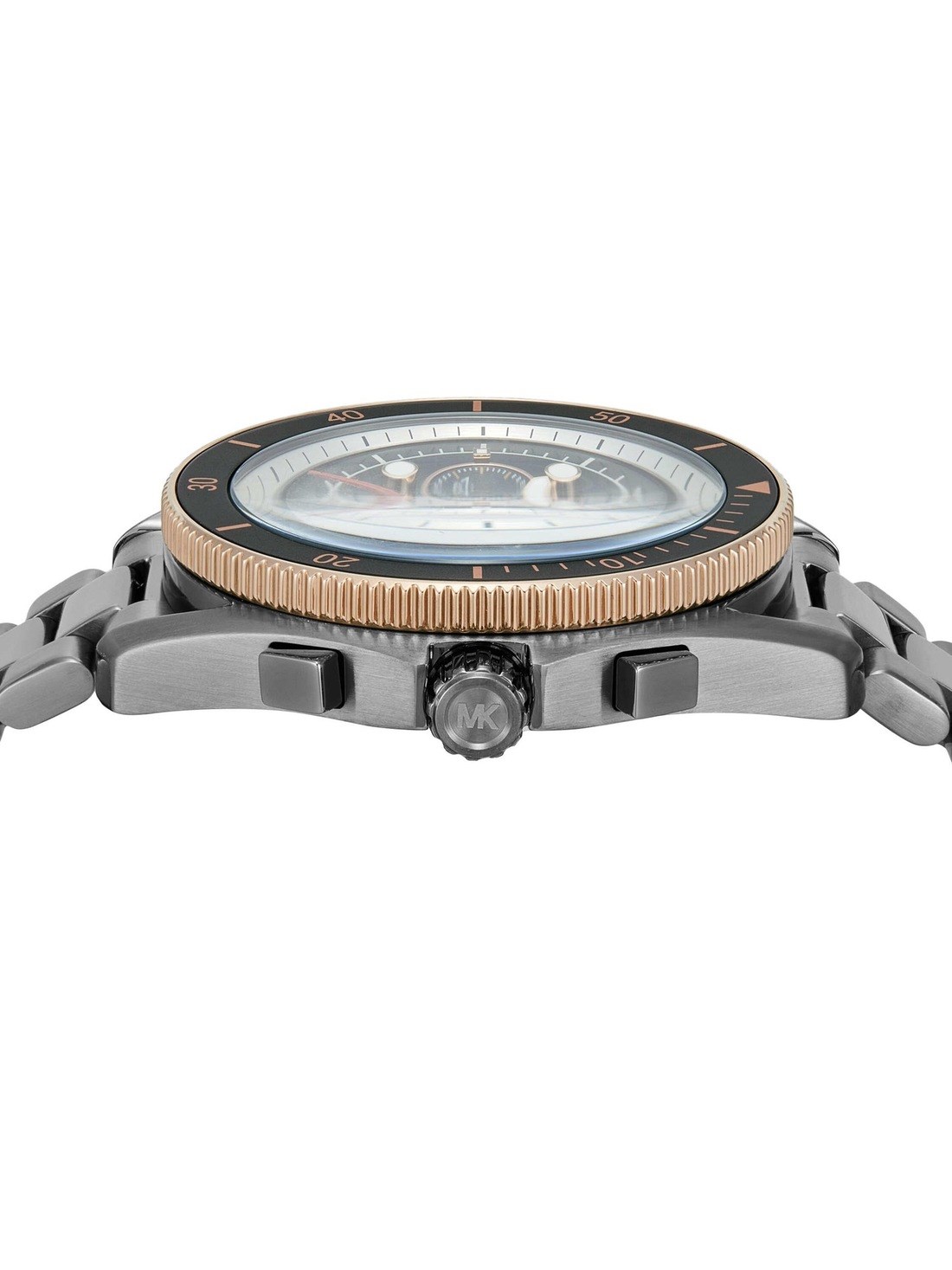 Short Description Michael Kors' Maritime watch translates nautical inspiration into modern style. Plus its water resistant up to 20 ATM. For spring, the classic 'dive' inspired watch features color combinations of gunmetal accented with subtle rose gold details to strike the perfect balance of bold sport with a polished finish.