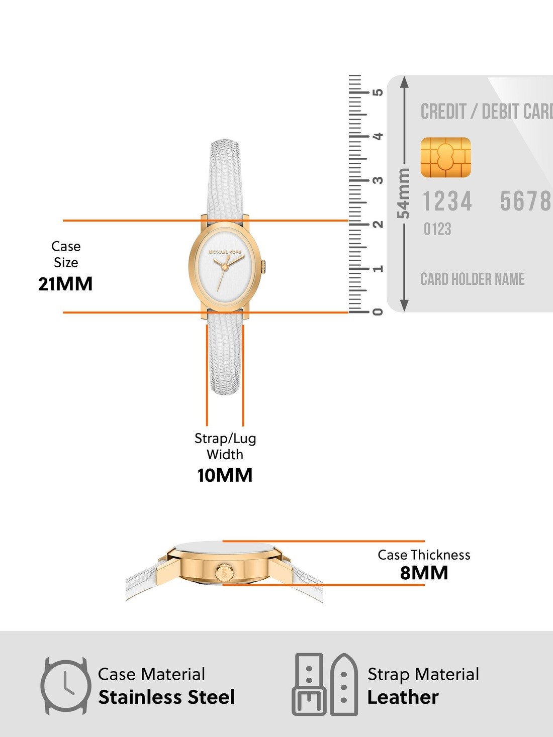 Watch Features mk, michael kors, michael kors watches for women, women's michael kors watches, leather watches for women, white watches for women, maude, quartz three hand, japan, japanese movement, oval, oval face, oval watch