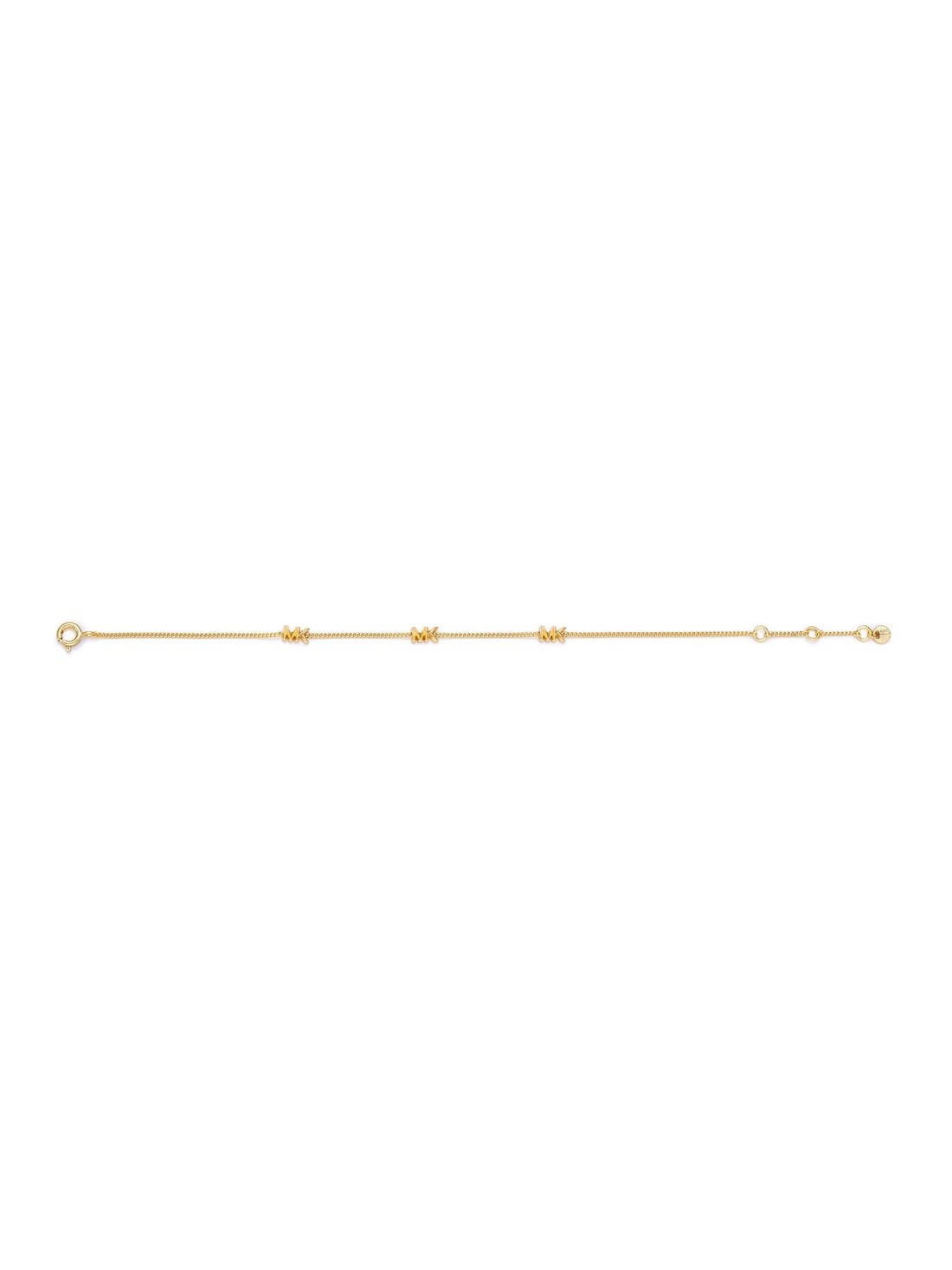 Short Description Celebrate the legacy of Michael Kors with the Kors MK collection, where his life and work are honored through the iconic MK logo as a central design motif. This bracelet, crafted from sterling silver and finished with 14K gold, radiates elegance. Offering versatility, the slider closure allows for adjustable length to suit your preference. The delicate design makes it perfect for any occasion. A must-have for the modern woman who values luxurious simplicity.