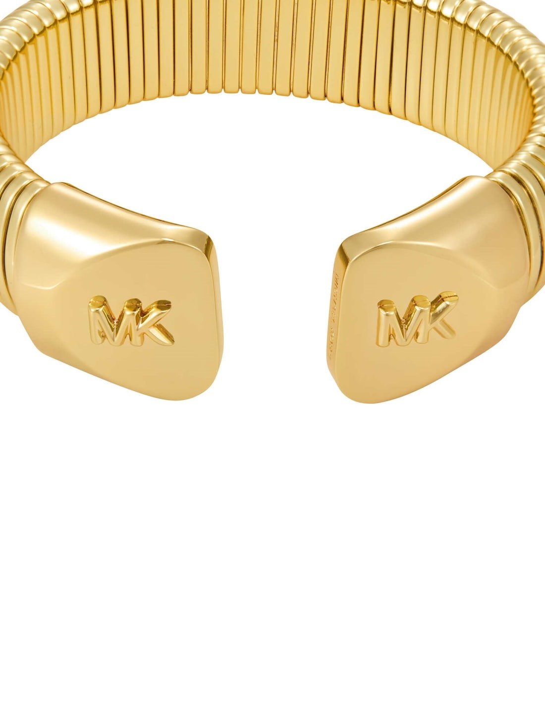 Short Description Complete your ensemble with the eye-catching Michael Kors Ribbon Flex Cuff Bracelet. Designed for women who appreciate contemporary style, this piece will be the exclamation point to your outfit. Crafted from elevated brass and finished with 14K gold, this bracelets sleek and lightweight design makes it a standout accessory. Pair it with the Ribbon Flex Collar Necklace for a bold look.