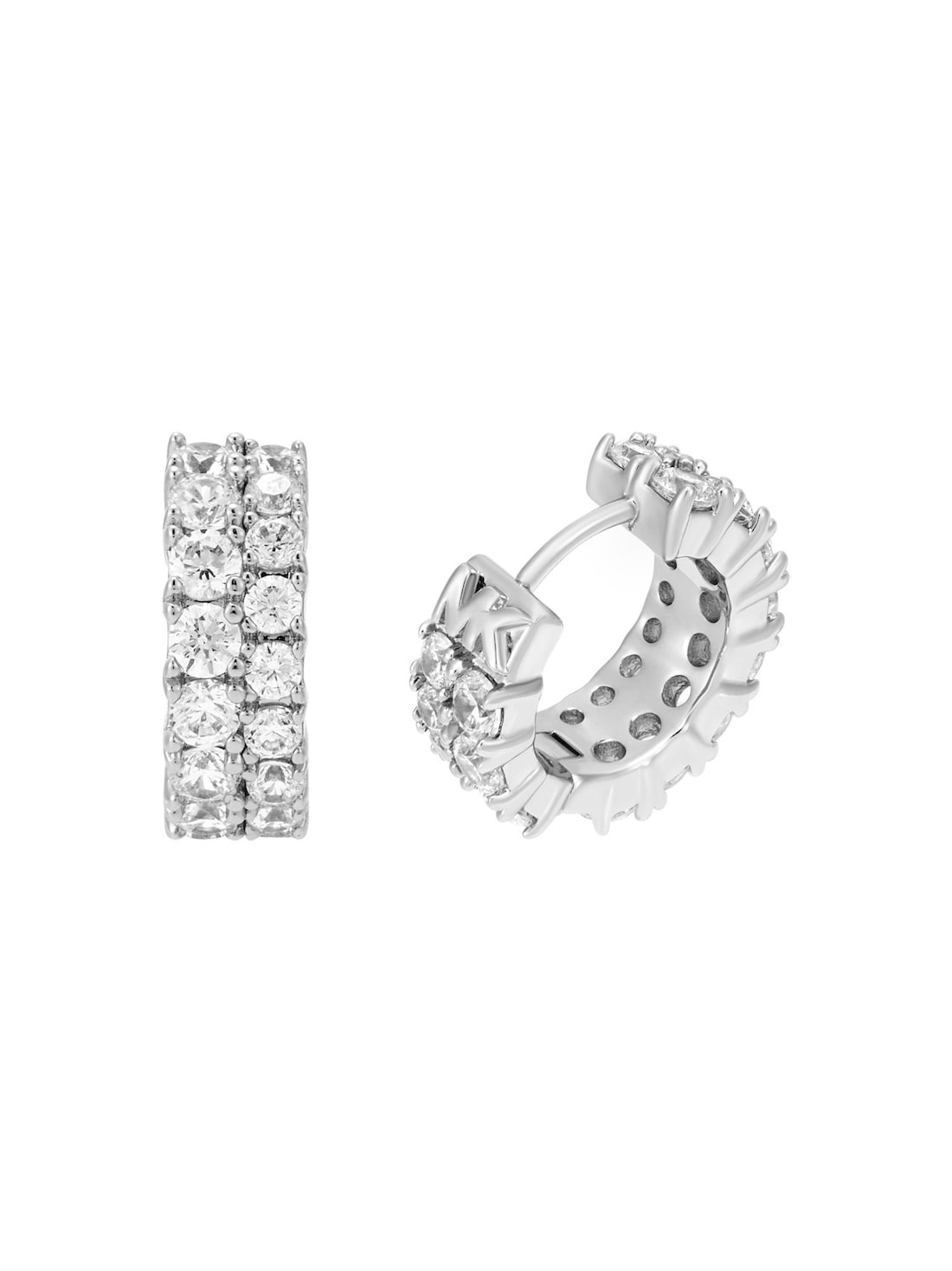 Short Description Complete your ensemble with the exquisite charm of our Kors Brilliance collection, a true testament to understated luxury. These silver-tone pavé huggie earrings will be the earrings you reach for over and over again. Crafted for both style and comfort, these earrings are an effortless addition to any jewelry collection.