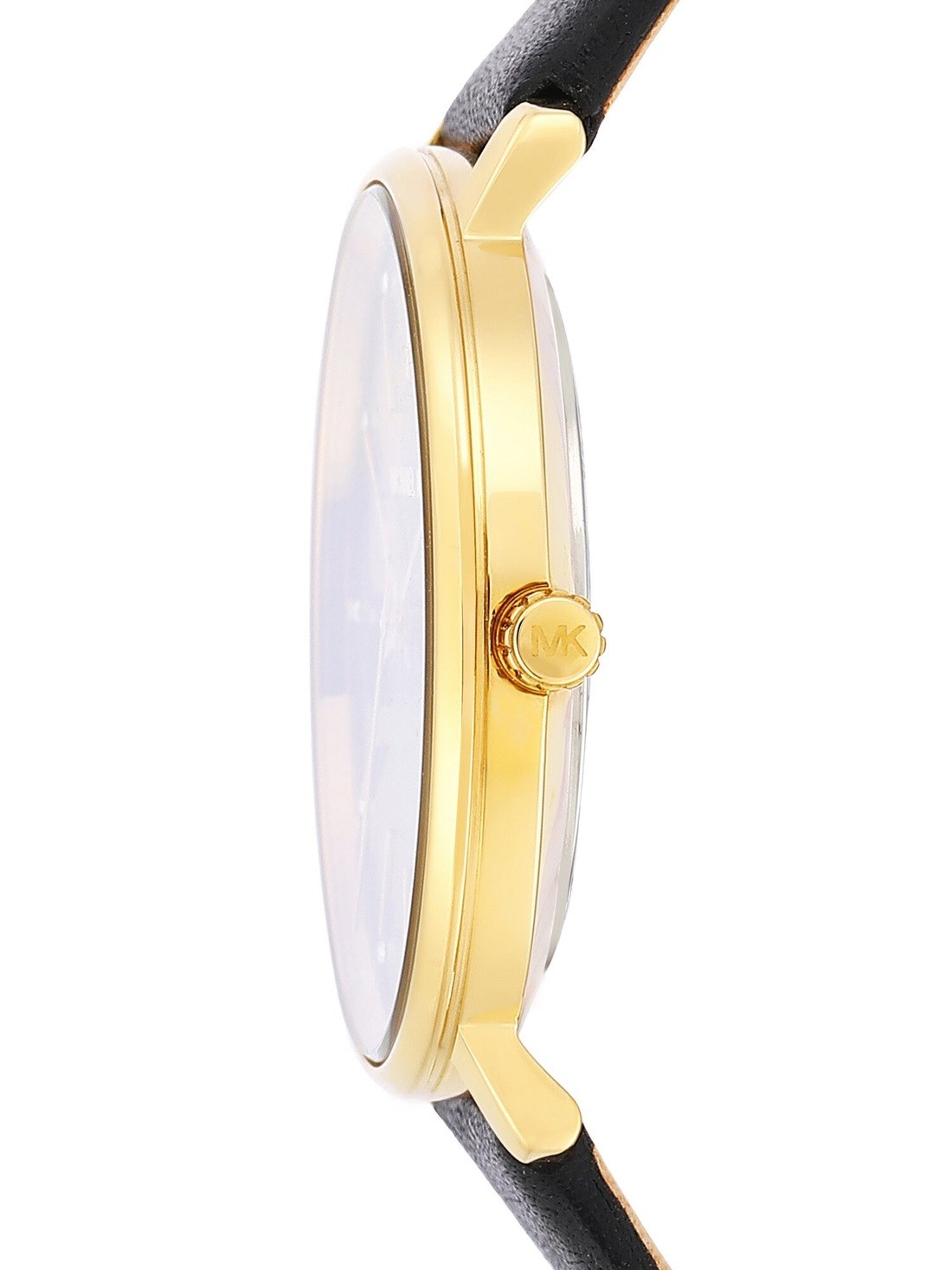 Short Description This 38mm Pyper watch features a black sunray dial with gold-tone stick indexes, three-hand movement and black leather strap.