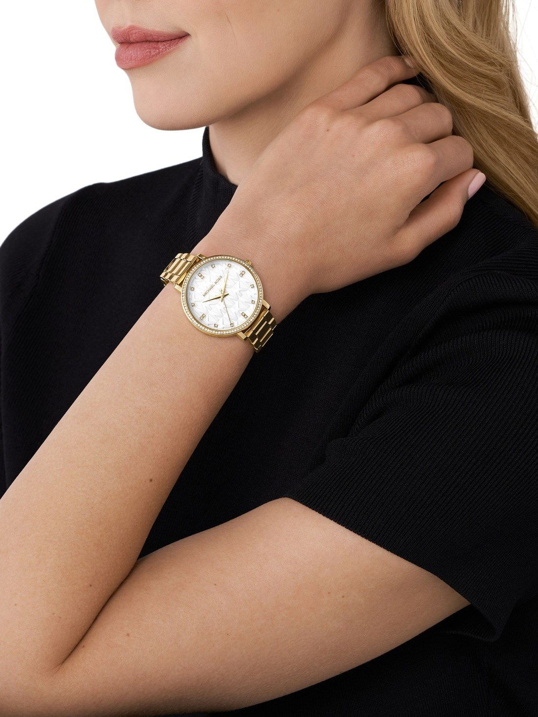 Watch Features mk, michael kors, michael kors watches for women, women's michael kors watches, stainless steel watches for women, gold watches for women, quartz three hand watches for women, pyper, japan, japanese movement, minimalist