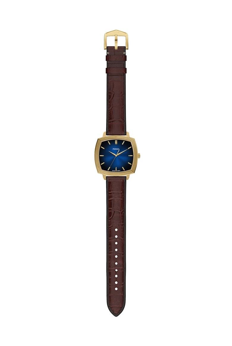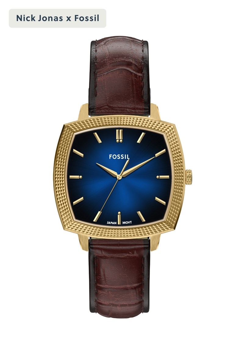 Watch Features fossil, fossil watches for unisex, unisex's fossil watches, leather watches for unisex, quartz/3hand watches for unisex, brown watches for unisex, machine luxe, japan, japan movement, crocodile, nick jonas, shaped, numbered