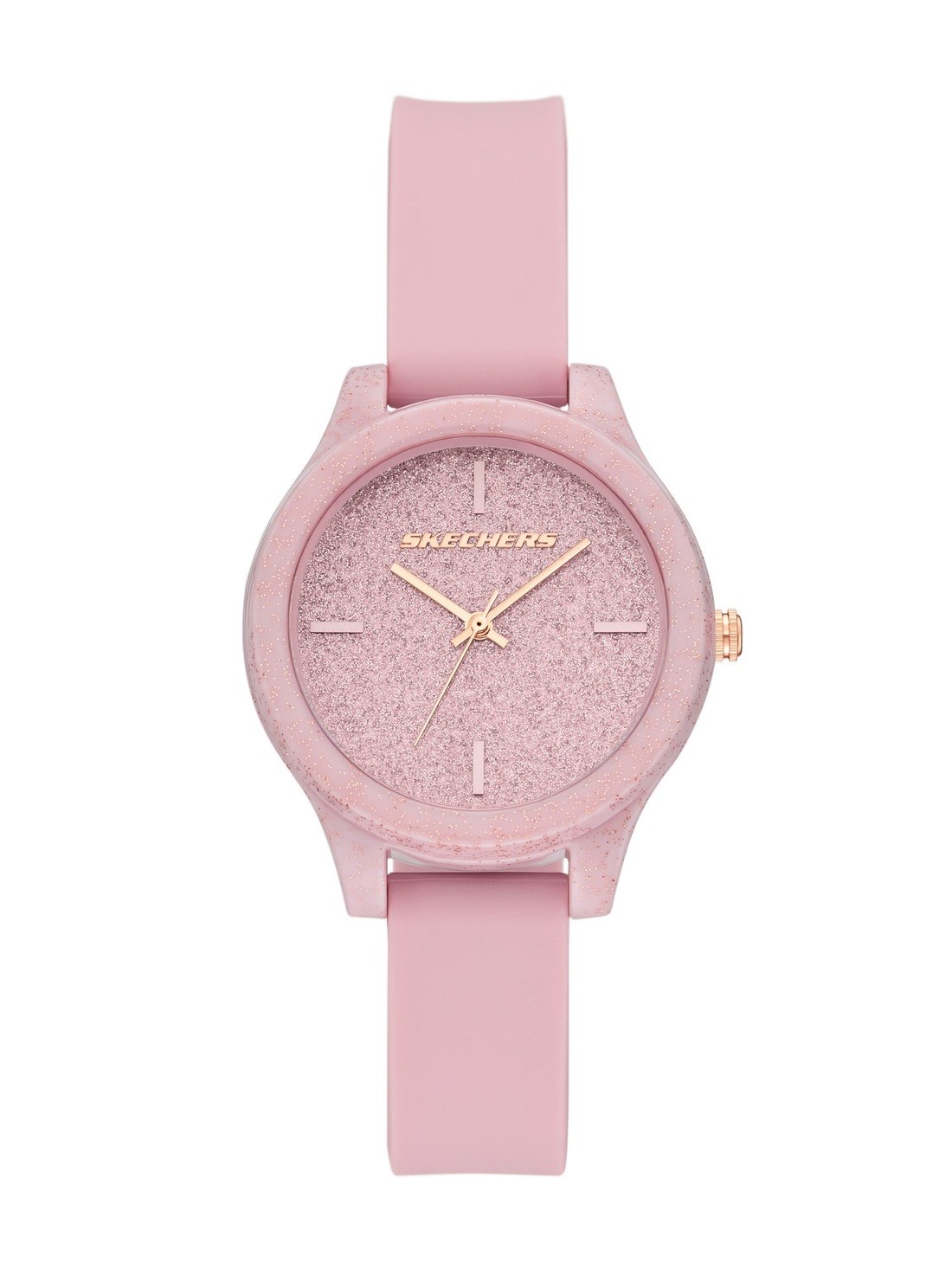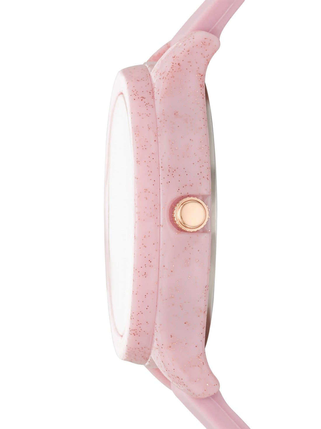 Short Description This blush silicone watch features a glitter-detailed case and dial for a subtle touch of sparkle. Its soft, durable strap ensures effortless wear all day.