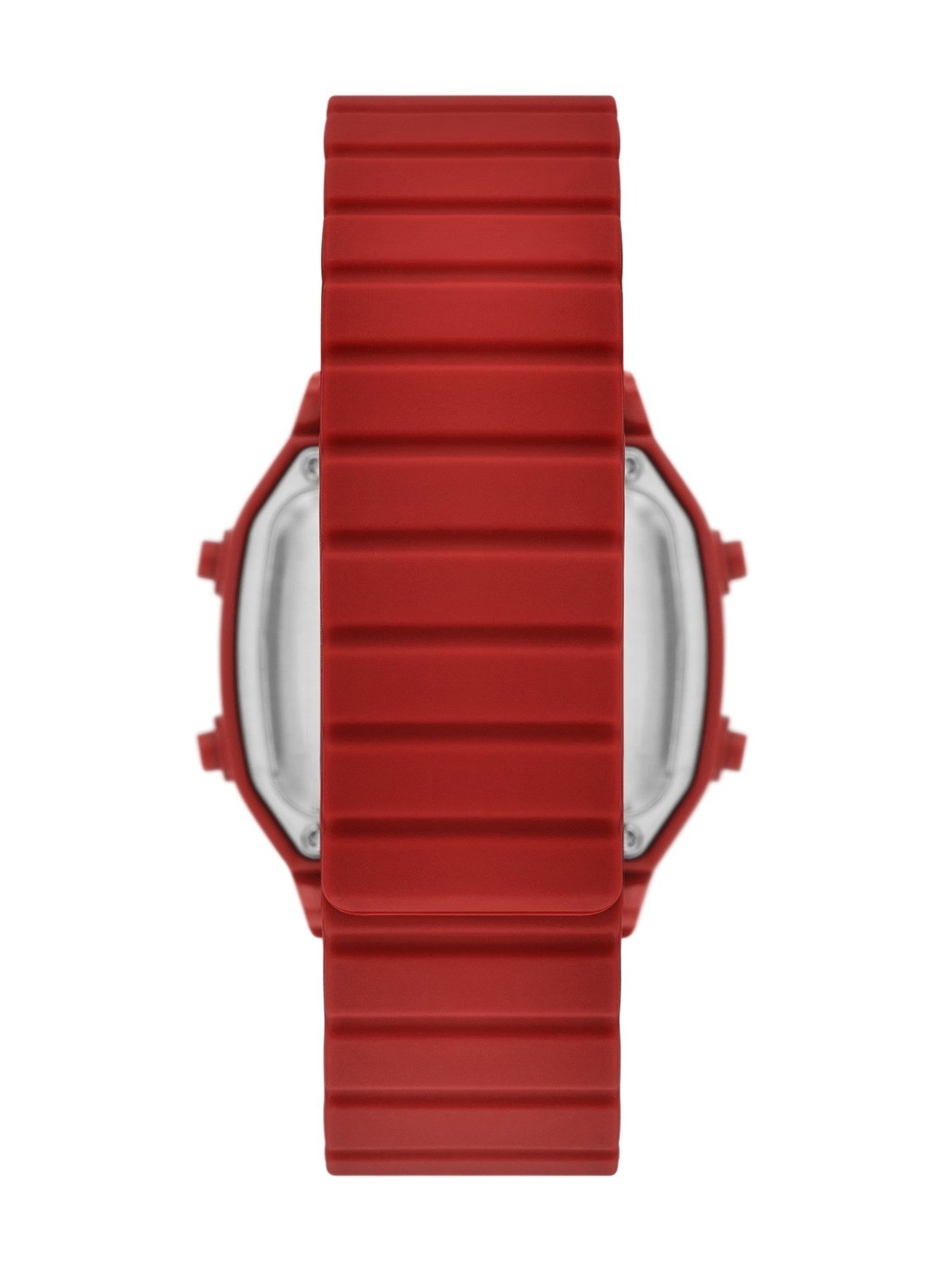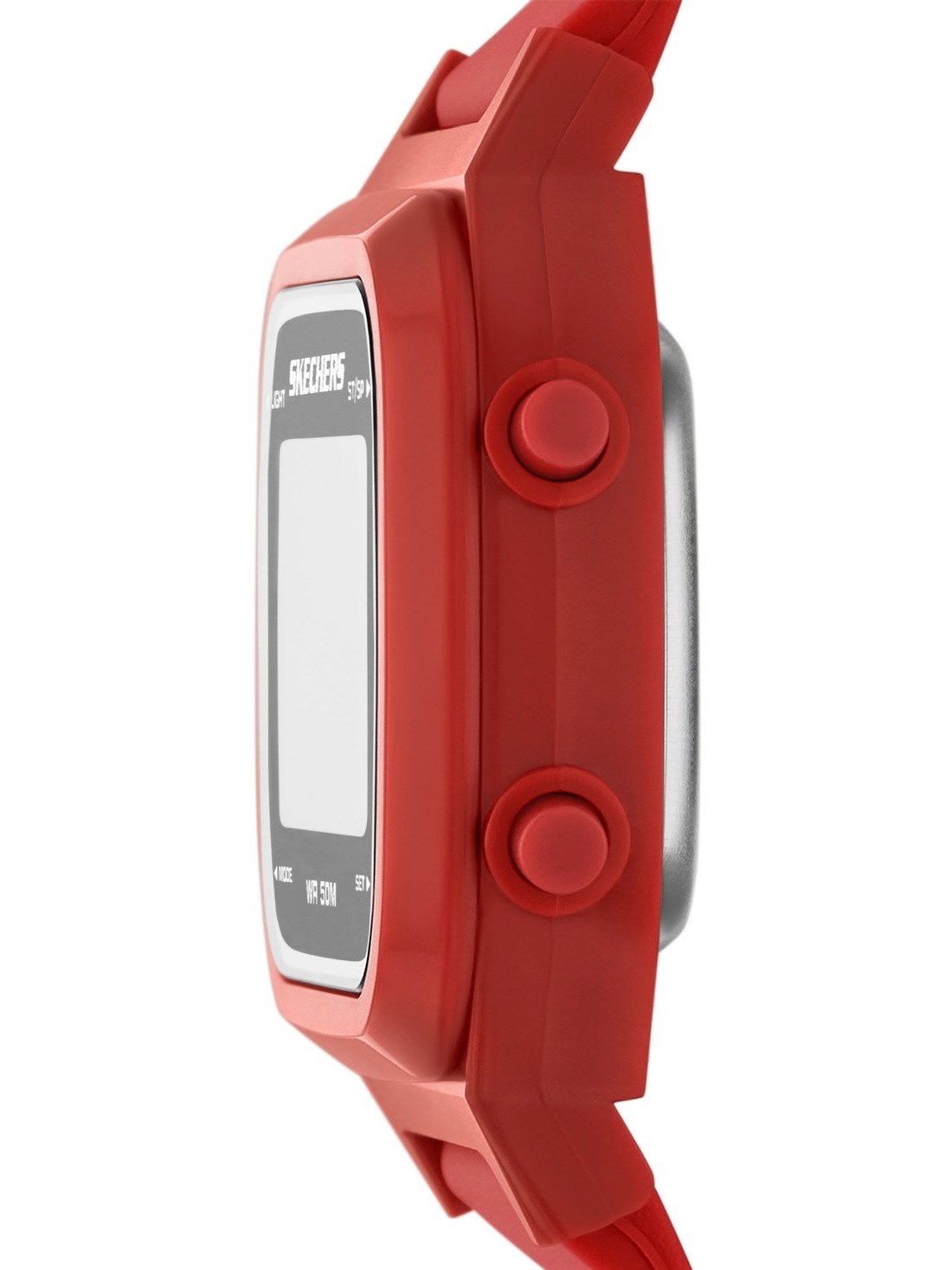 Short Description A bold red silicone strap with Skechers Slip-Ins magnetic closure pairs seamlessly with a rectangular case and negative digital display for a modern, functional design.
