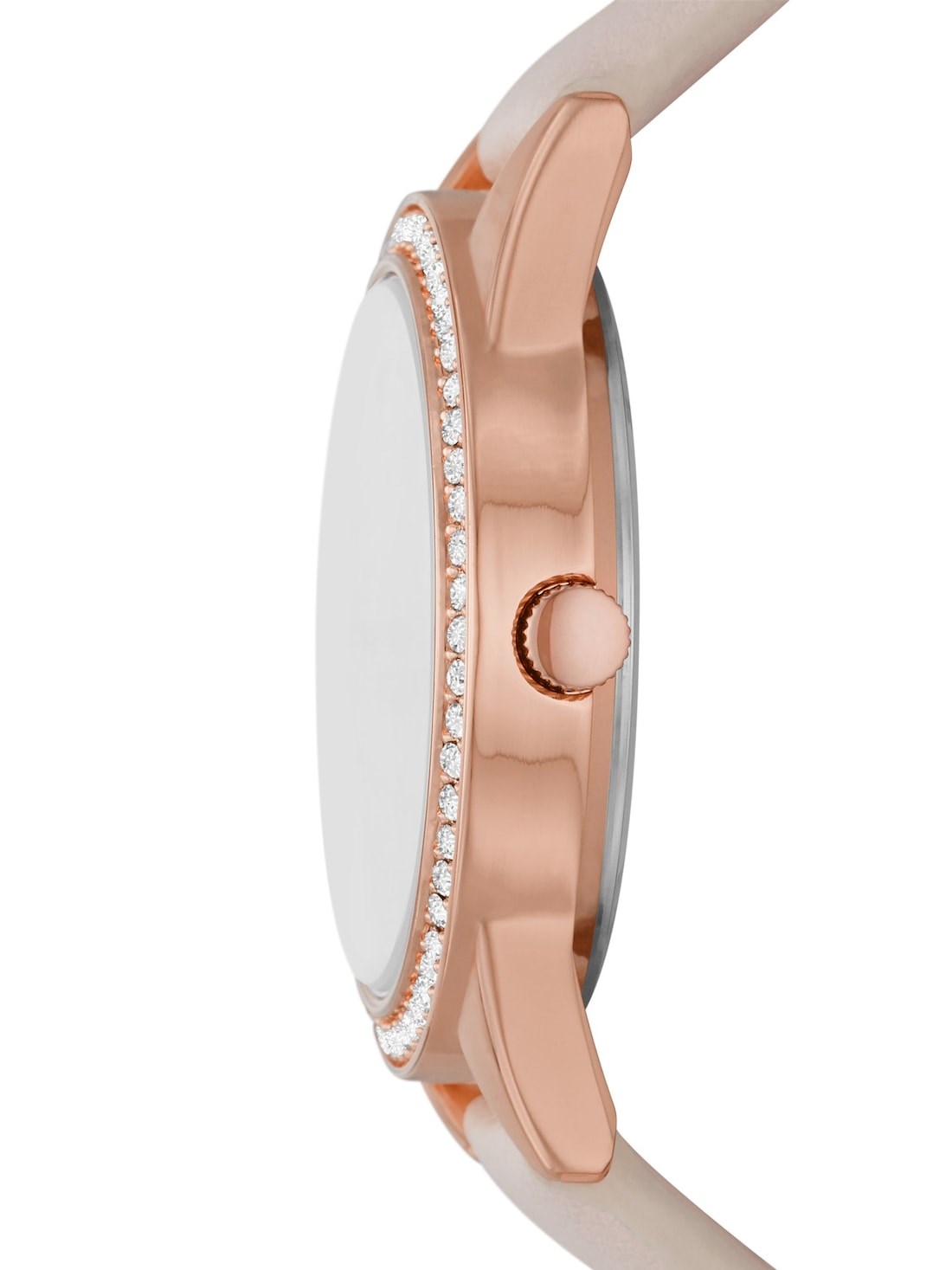 Rose gold plated alloy case; rose gold dial without date window
