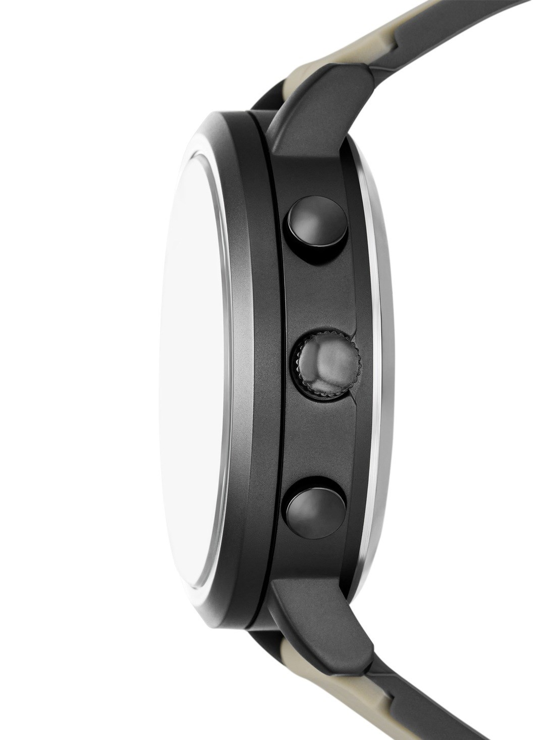 Short Description The oversized gunmetal case frames a textured gunmetal dial, complemented by a gray silicone strap with dark gray accents for a comfortable and durable design.