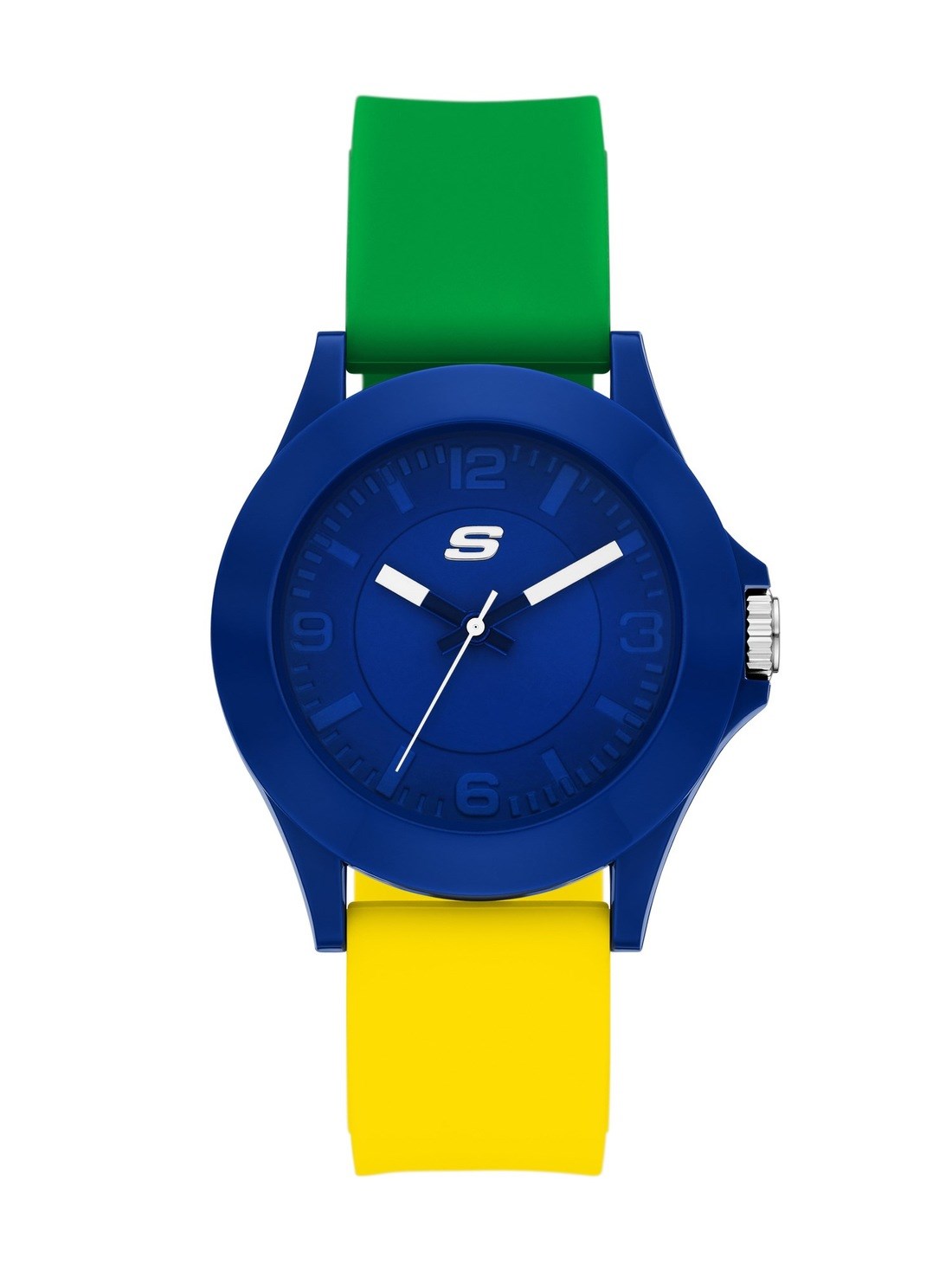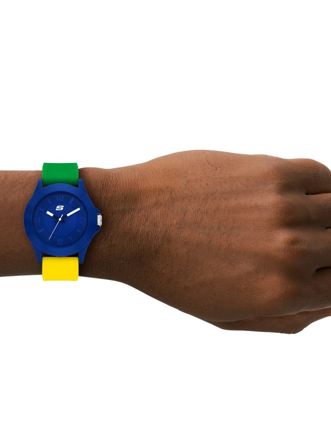 Short Description A vibrant blue case pairs with a multicolor silicone strap in green and yellow —celebrating Brazil's iconic colors with a sporty, standout design.