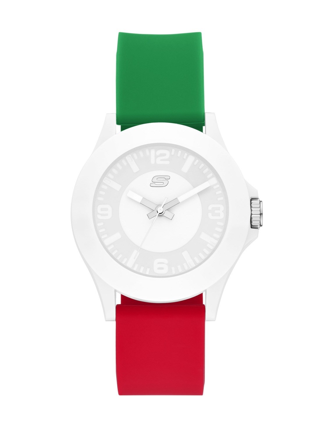 Short Description A white round case pairs with a silicone strap in green, white, and red, channeling Italian pride in a vibrant, sport-inspired design.