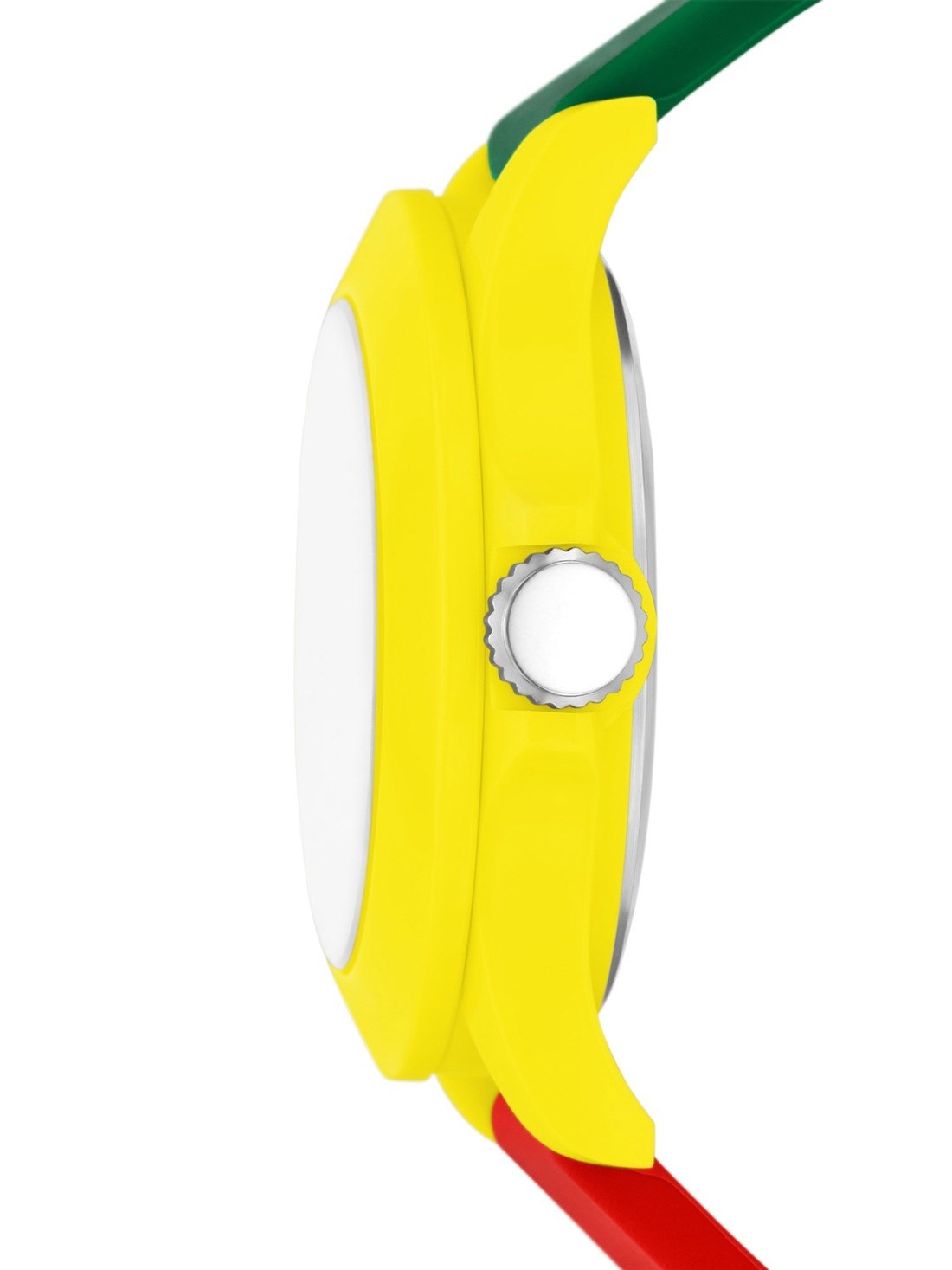 Dial: Round yellow polycarbonate case, with a semi-gloss yellow dial.