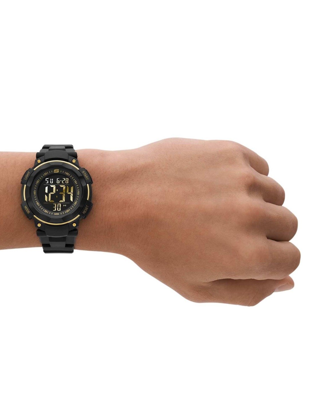 Watch Features Skechers; Skechers Watches; Skechers Watches for Men; Black Watches; Black Watches For Men; Digital Watch; Digital Watch For Men; Sport Watch; Sport Watch For Men; Ruhland; Chronograph, Stopwatch; Split Time; 12 Hour; 24 Hour; Calendar; Day; Date; Alarm; Snooze; Chime; 45MM; 5ATM; Water Resistant; Hand Washing; Shower; Bathing; EL Backlight; Warranty; Male; Adult; Plastic; Athleisure; Fashion; Sport; Athletic; Work Out; Yoga; Pilates; Running; Walking; Cleaning; Work; Yard Work; Round; Battery;