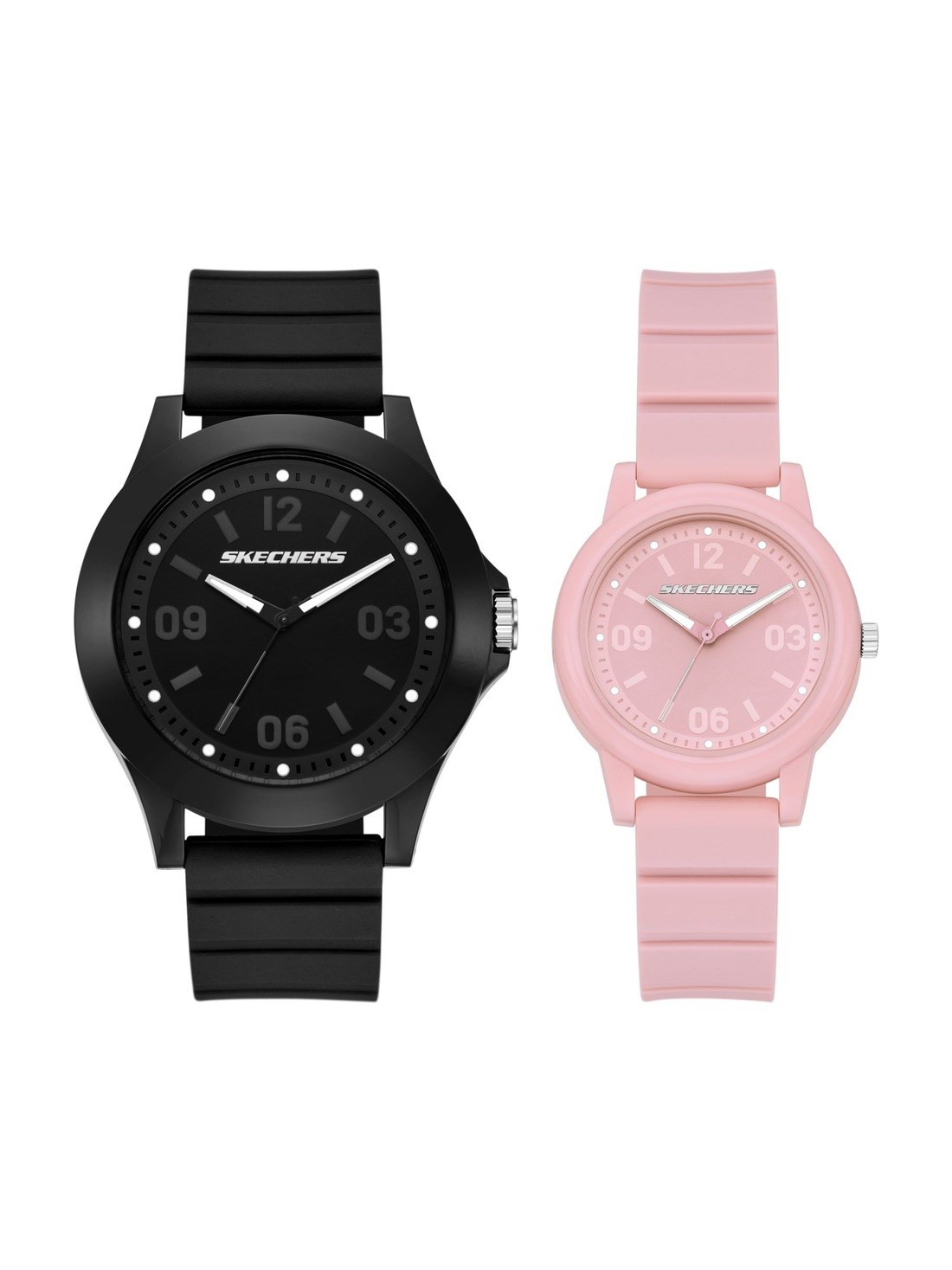 Short Description This coordinated set features a sleek black watch and a soft blush counterpart, both designed with durable silicone straps and lightweight, round plastic cases.