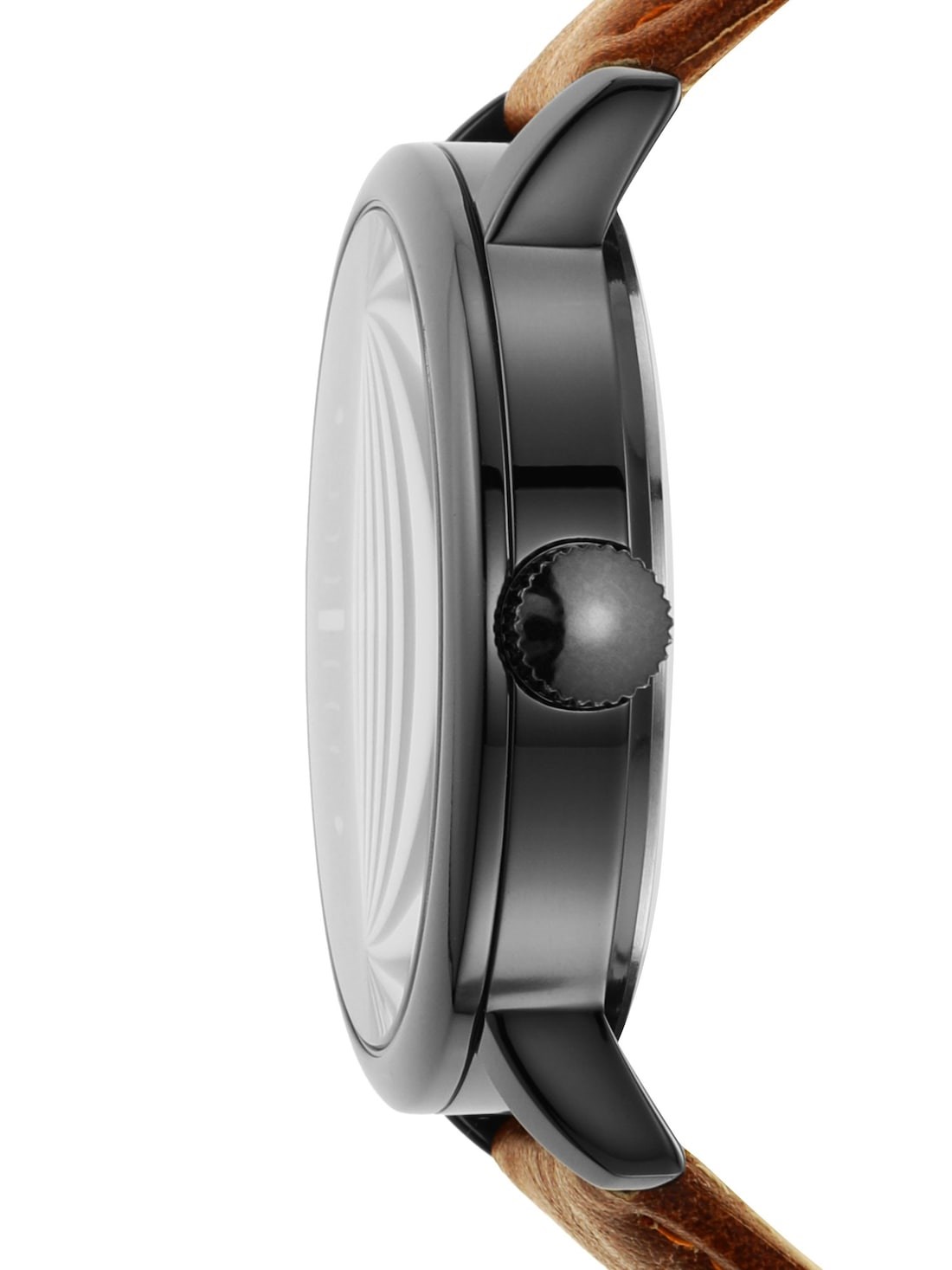 Gun-metal plated alloy case; black dial without date window