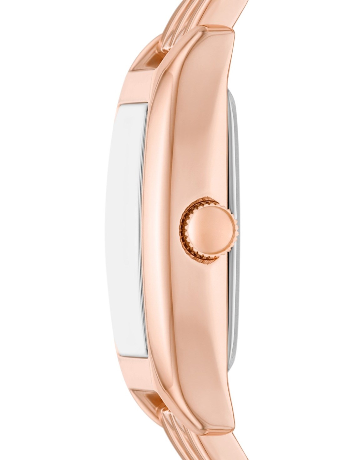 Short Description A sunray rose gold-tone dial complements the small cushion-shaped case and metal bracelet. The set is completed with three coordinating blush and rose gold-tone bracelets.