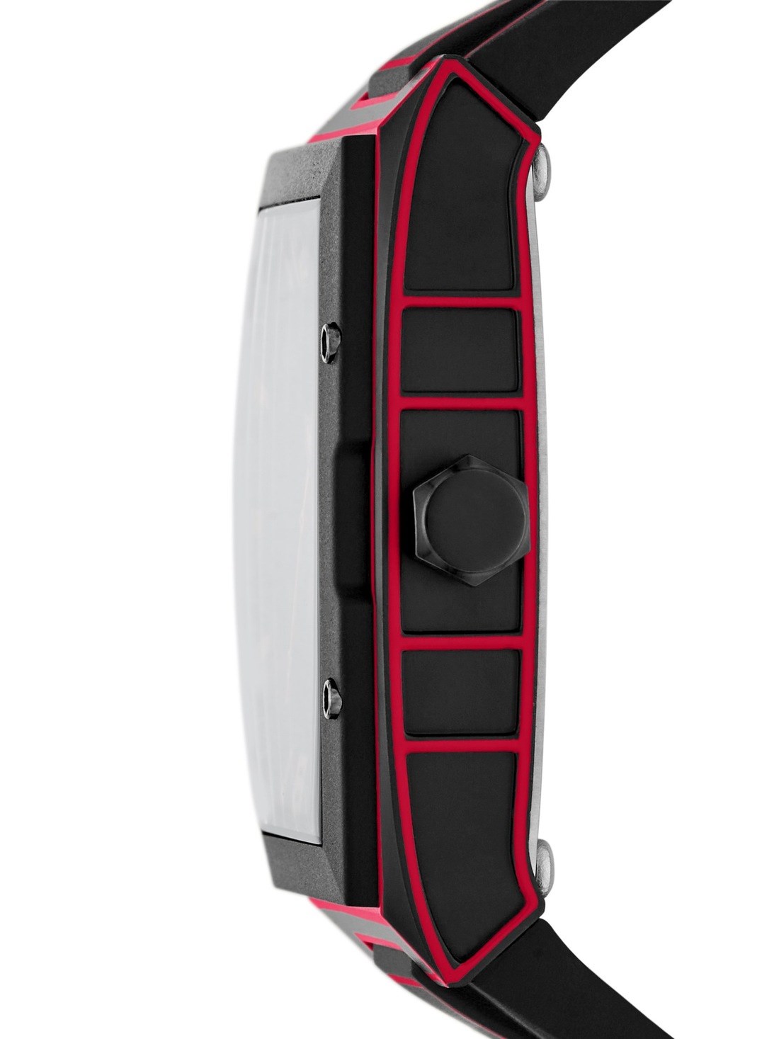 Short Description A barrel-shaped case, bold red accents, and gear detailing on the black novelty dial create a dynamic design that draws inspiration from comic art.